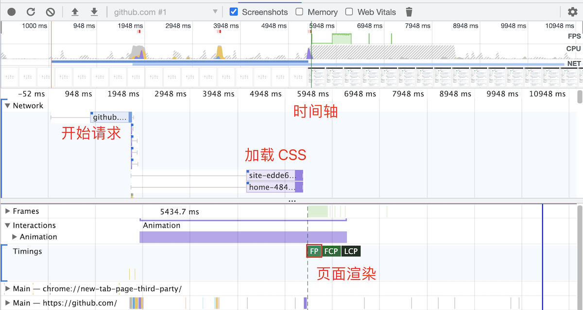 如下图是 github 的性能分析,很明显这是加载慢,渲染很快。