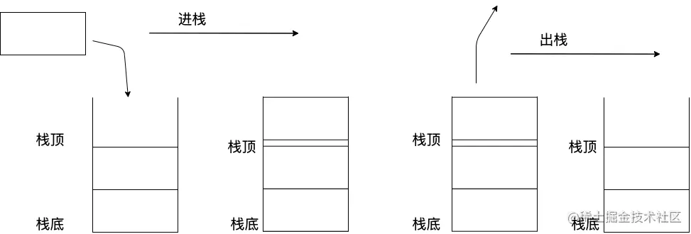- 允许插入和删除的一端称为栈顶,另一端称为栈底