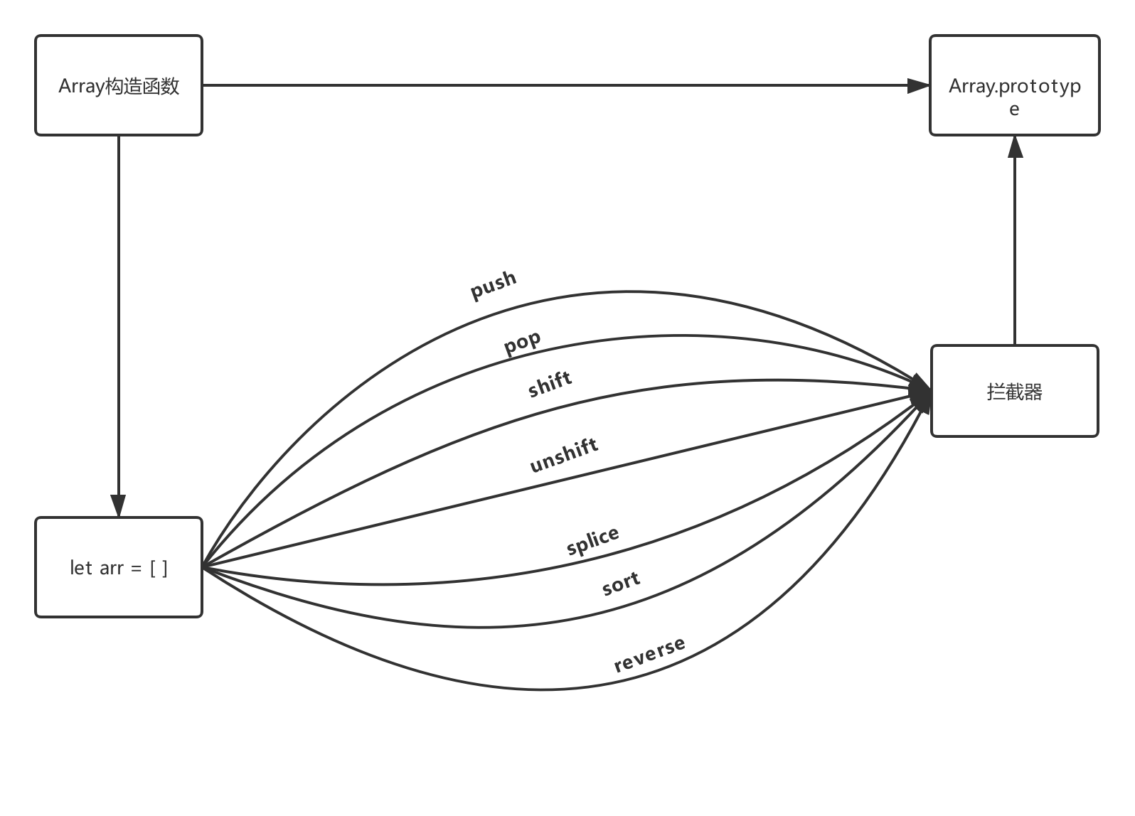 在上一小节的图中,我们把拦截器做好还不够,还要把它挂载到数组实例与Array.prototype之间,这样拦截器才能够生效。
