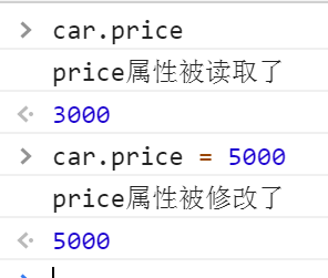 我们定义了这个car的品牌brand是BMW,价格price是3000。现在我们可以通过car.brand和car.price直接读写这个car对应的属性值。但是,当这个car的属性被读取或修改时,我们并不知情。那么应该如何做才能够让car主动告诉我们,它的属性被修改了呢?