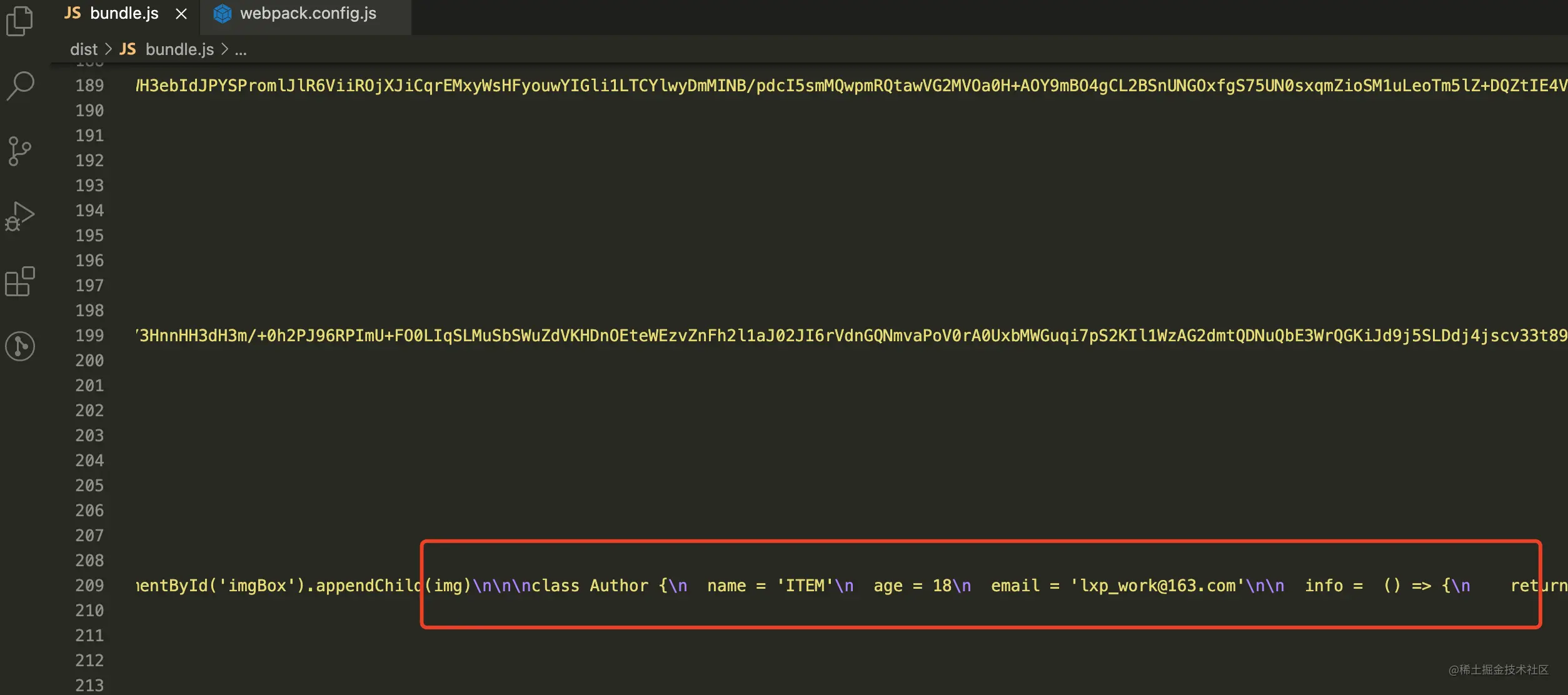 打包完成之后,打开 bundle.js 查看打包后的结果